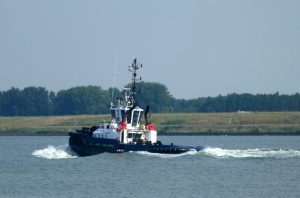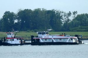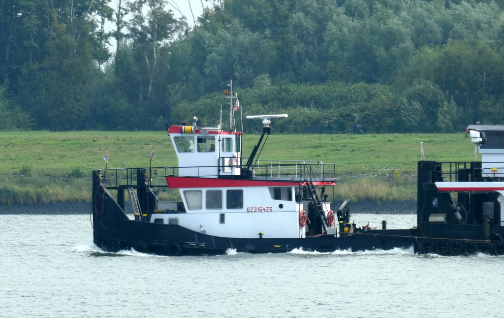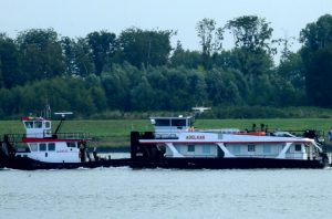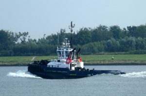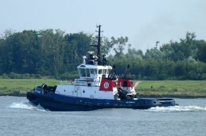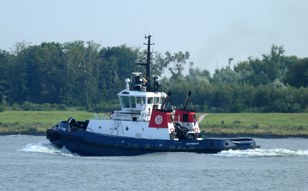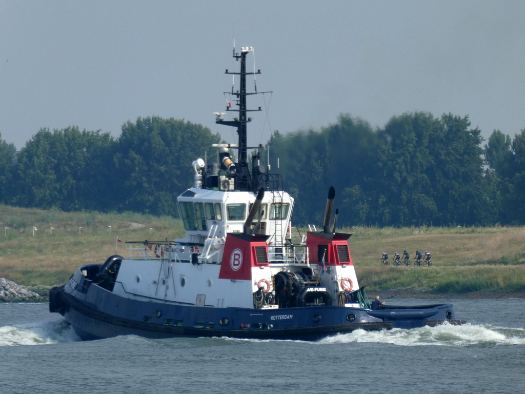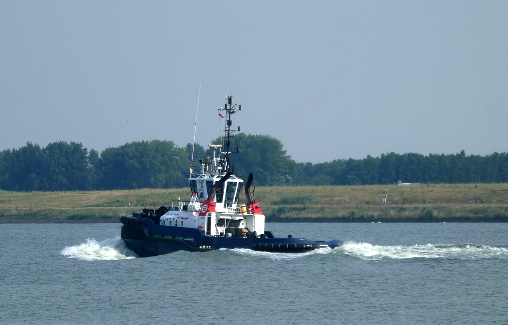 Zondagmorgen 20 juli 2025 gezien in Het Scheur vanaf de Scheurkade, de duwboten: AREND en ADELAAR. De Boluda sleepboten: VB HUDSON en VB FURIE.