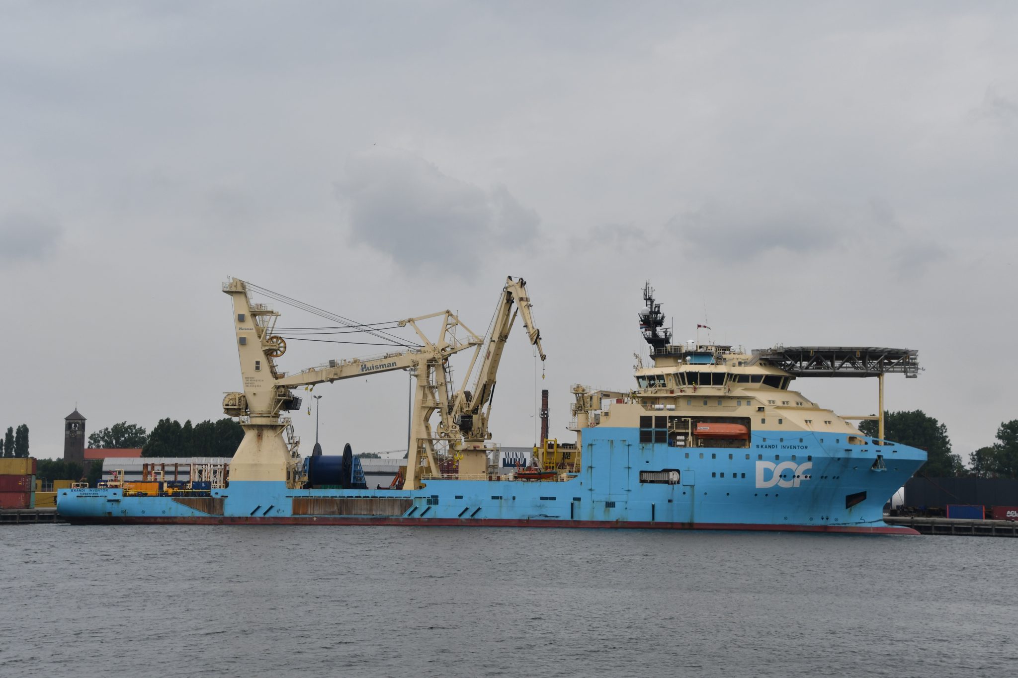 In IJmuiden / Velsen lag op 14-07-2025 de Skandi Inventor ( ex Maersk Inventor ) van de Dof Group uit Denemarken/ Noorwegen .