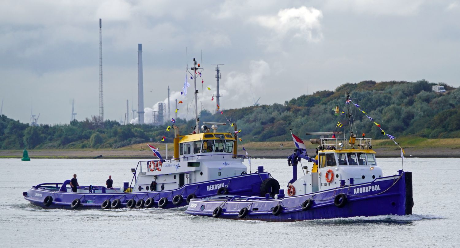 HENDRIK sr en de NOORDPOOL van Clots Maritiem vertrokken maandagmorgen vanuit de Berghaven van Hoek van Holland naar IJmuiden