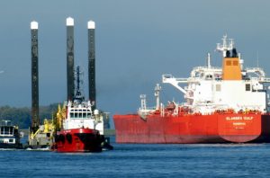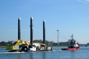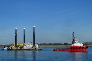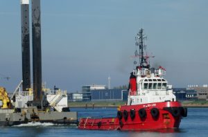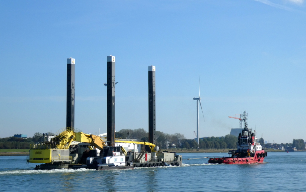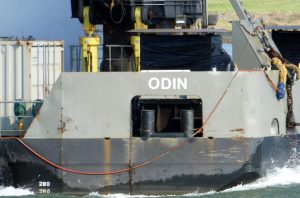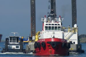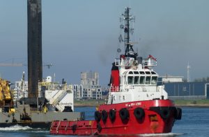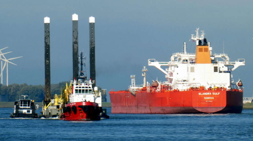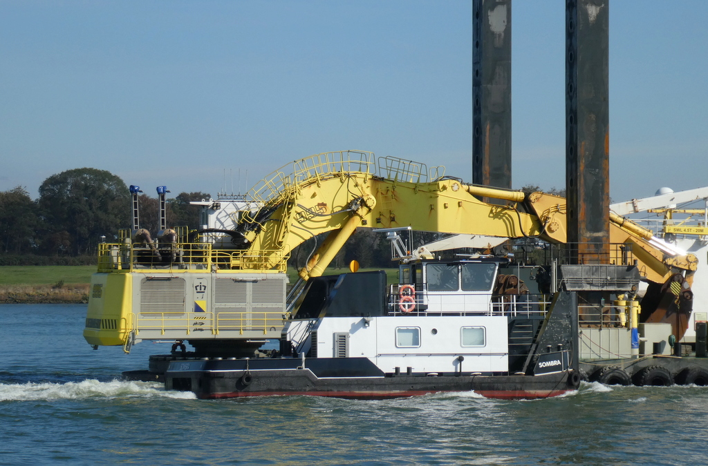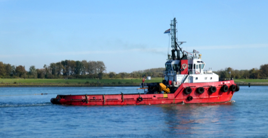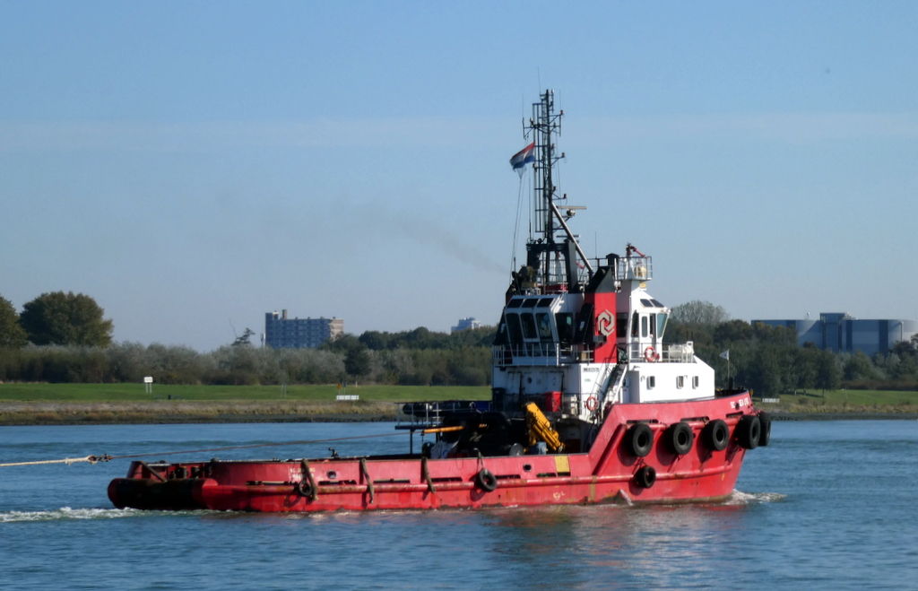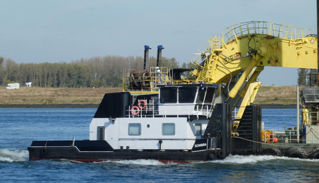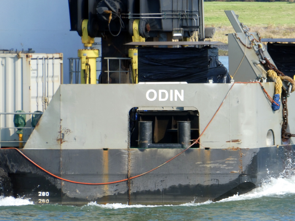 Zondagmiddag 28 september 2025, gezien in Het Scheur, vanaf de Scheurkade – Botlek, het sleeptransport van de sleepboot SC SEA LORD (1994) met ODIN. Assistentie verleende de duwboot SOMBRA. Bestemming: Waalhaven.