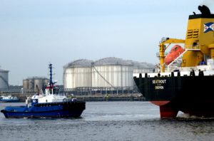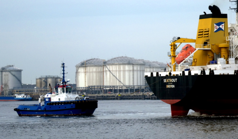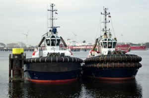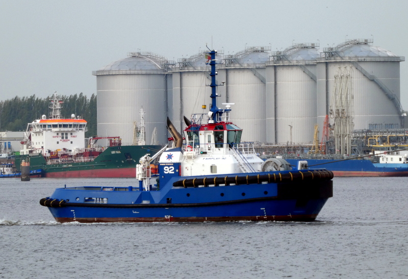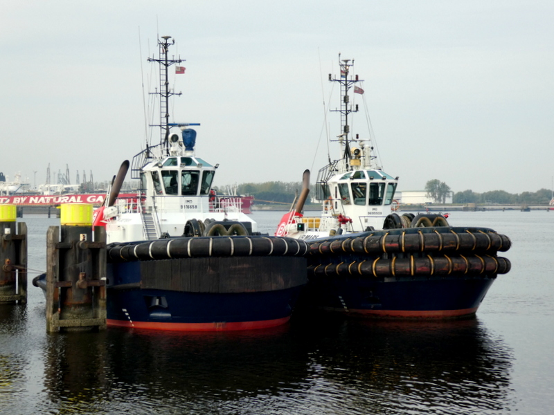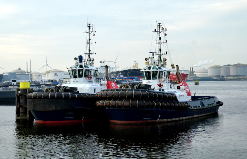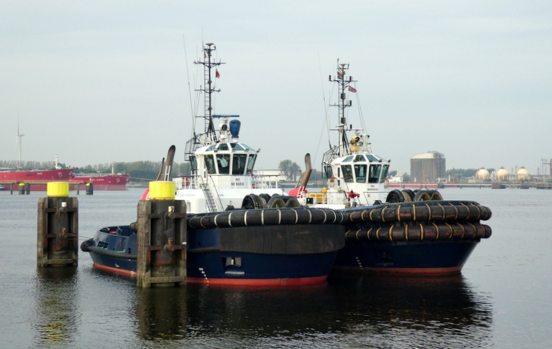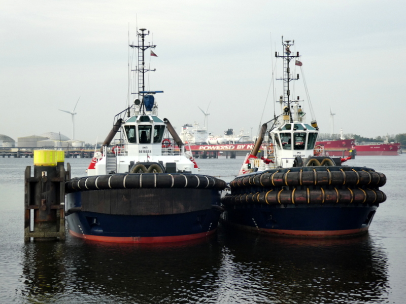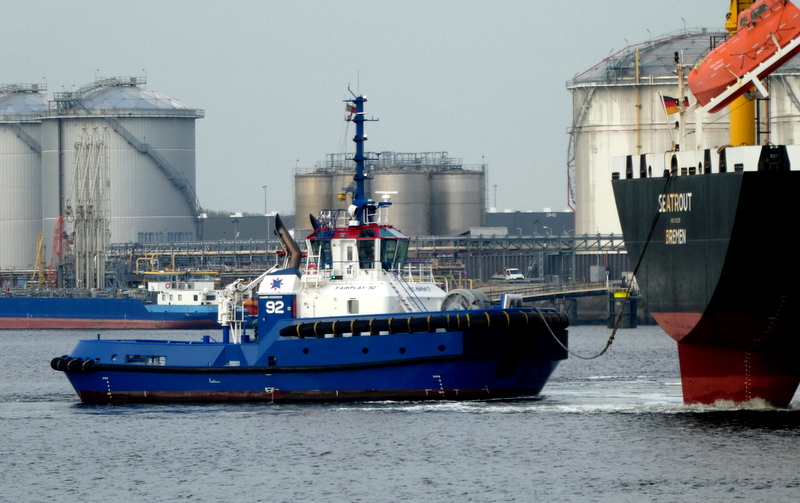 Donderdagmorgen 2 oktober 2025 gezien in het Calandkanaal, op de wachtplaats voor sleepboten, de Boluda sleepboten VB ROTTERDAM en VB MARS. En de FAIRPLAY-92 en FAIRPLAY-25, zij assisteerden de tanker SEATROUT.
