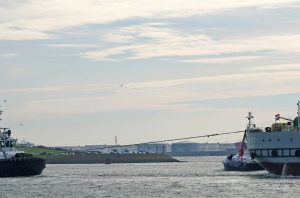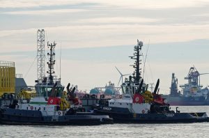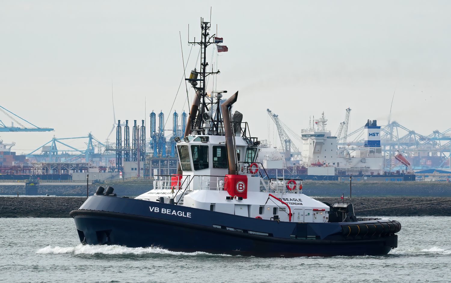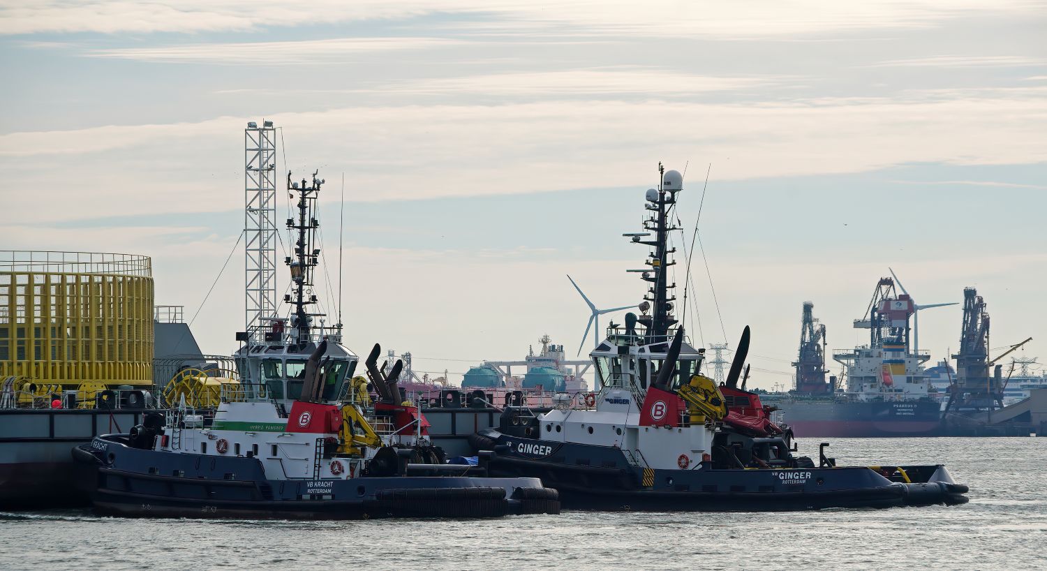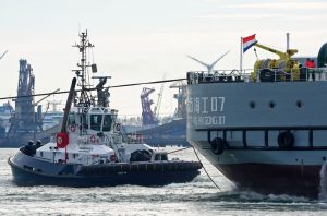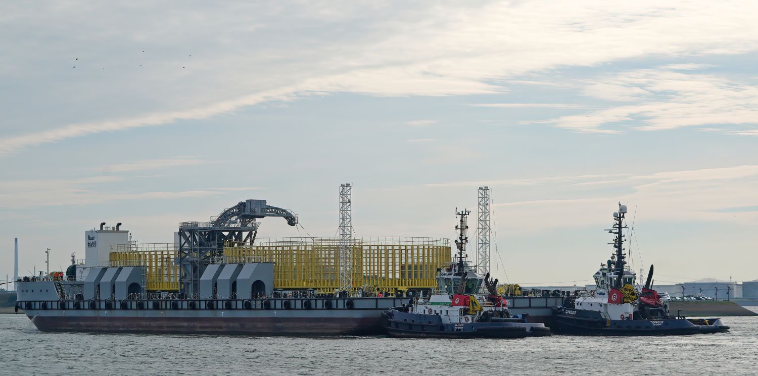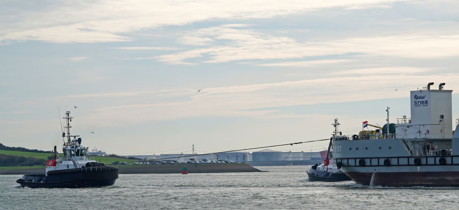 Zondagmiddag 19-10-2025 arriveerde de sleepboten CAMPERDOWN en GRAIGLEITH met de Cable Transport Barge DONG FANG HAI GONG 07 in de Maasmond, VB KRACHT , VB GINGER , VB ROTTERDAM en VB BEAGLE van Boluda towage namen de sleep over van de twee Engelse sleepboten en sleepten de Barge naar de Waalhaven in Rotterdam.