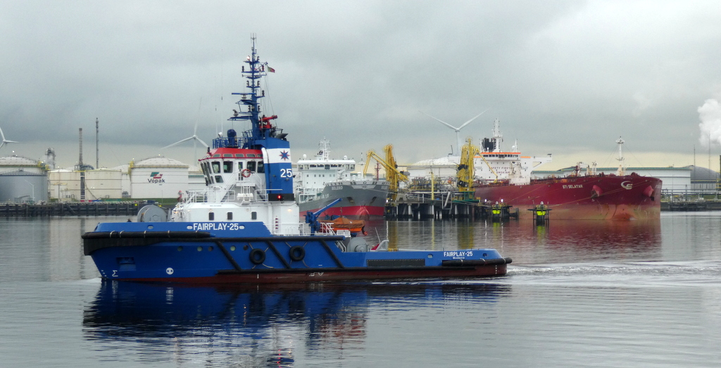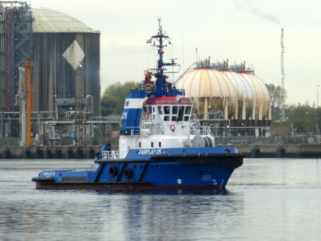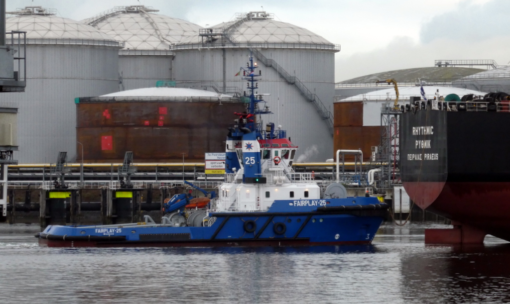 Woensdagmorgen 15 oktober 2025 assisteerden de FAIRPLAY-92 en FAIRPLAY-25 de vertrekkende tanker RHYTHMIC (2019) uit de 7e Petroleumhaven. Later beide FAIRPLAY sleepboten gezien in het Calandkanaal.