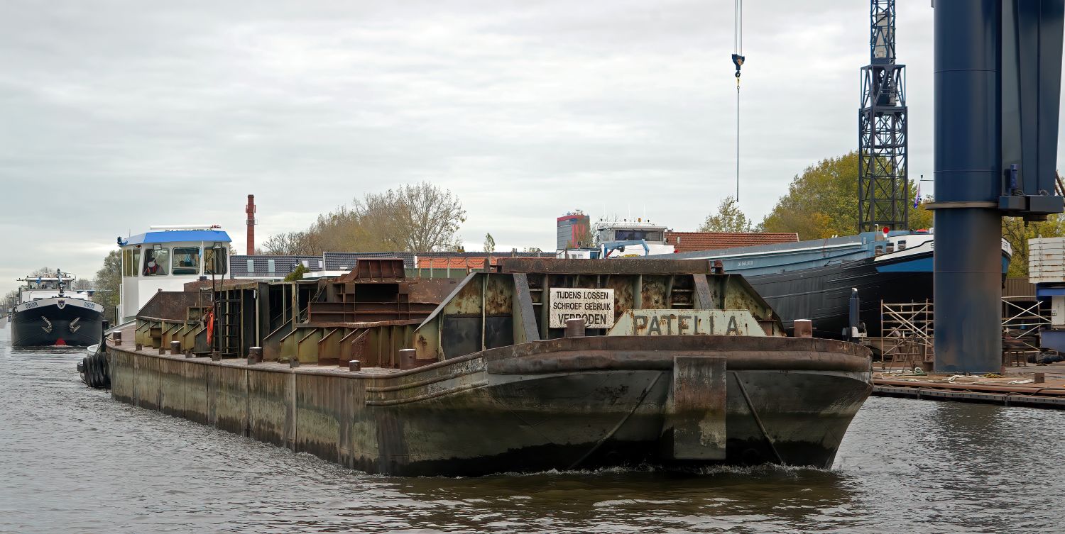 Vrijdag 31-10-2025 gezien in Delft op de Delftse Schie de sleepboot GEPKE die de bak PATELLA ophaalde , er werd gedraaid in de Nieuwe Haven en via Rotterdam naar Papendrecht gebracht.