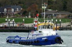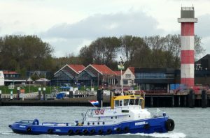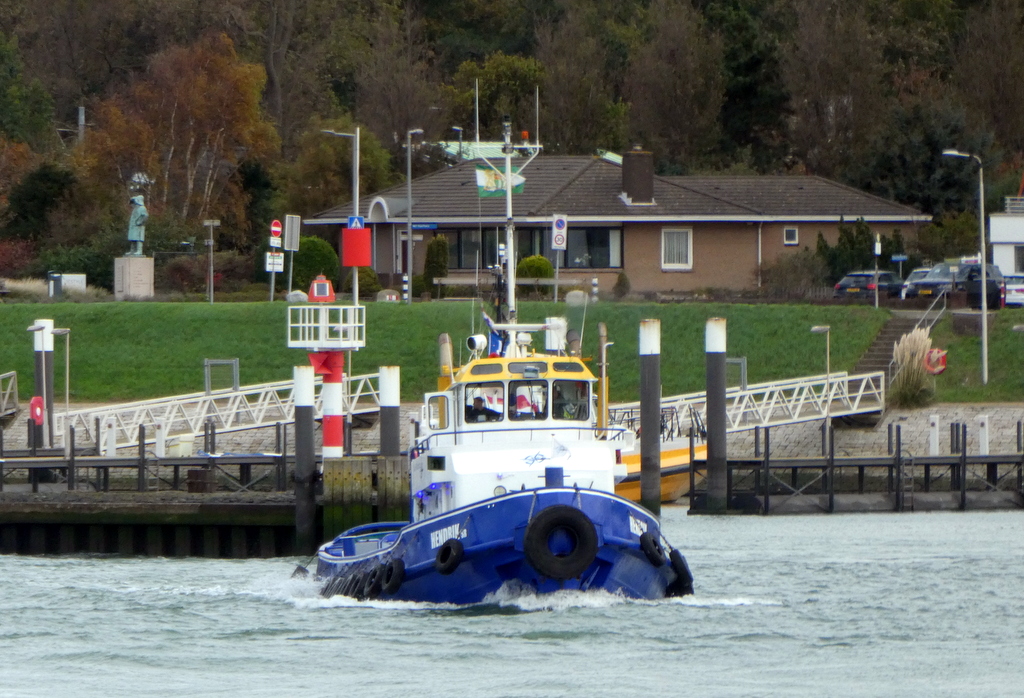 Woensdagmorgen 22 oktober 2025 gezien vanaf Het Kompas – Landtong Rozenburg – de sleepboot HENDRIK SR