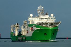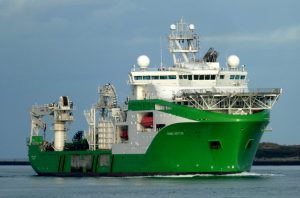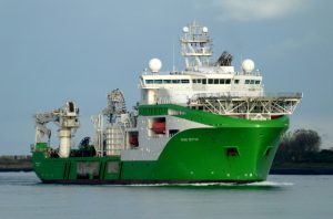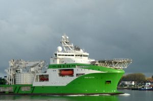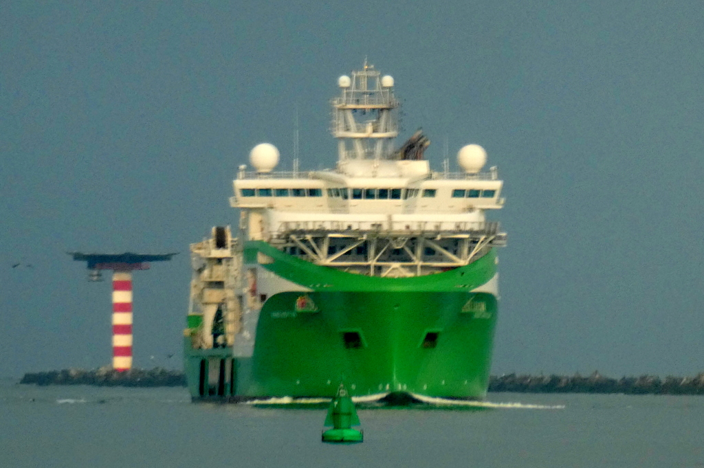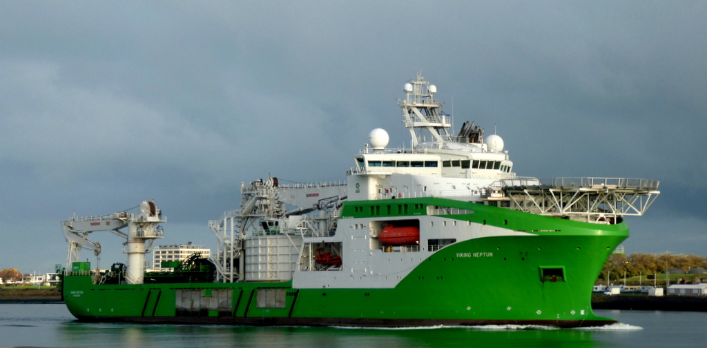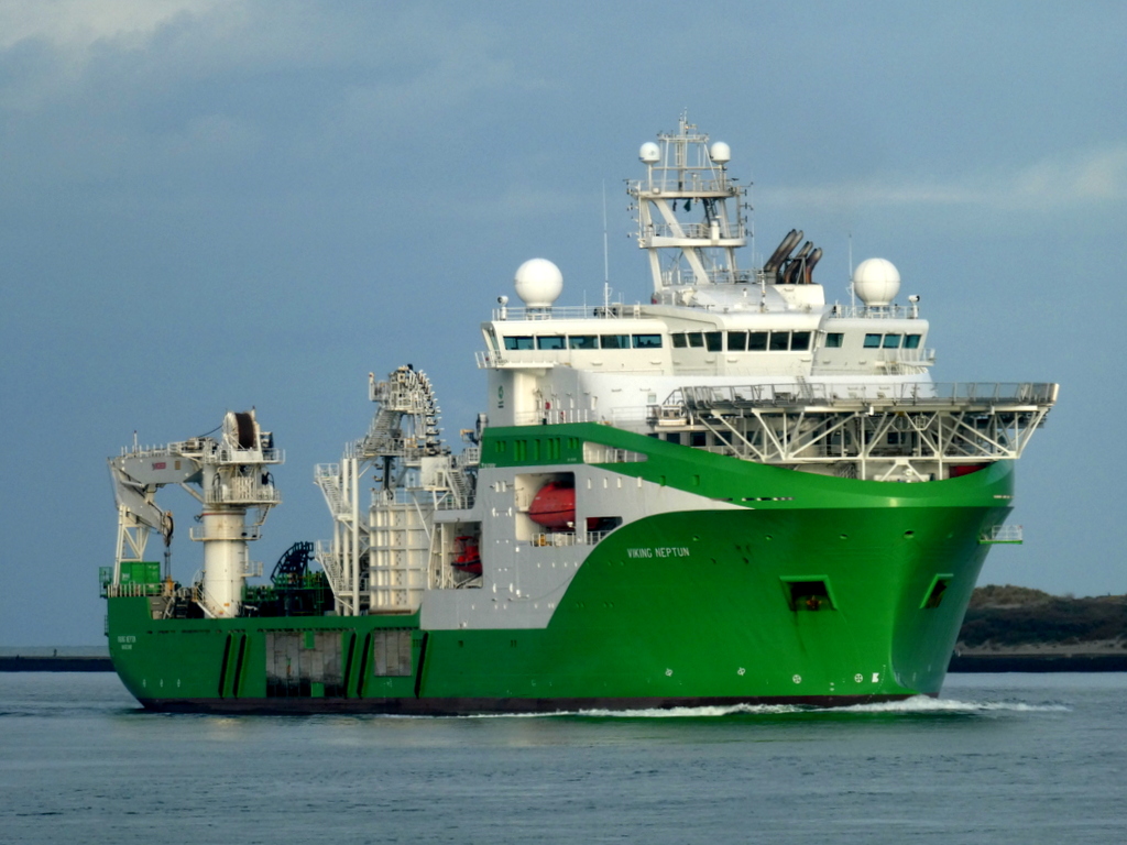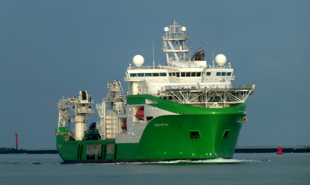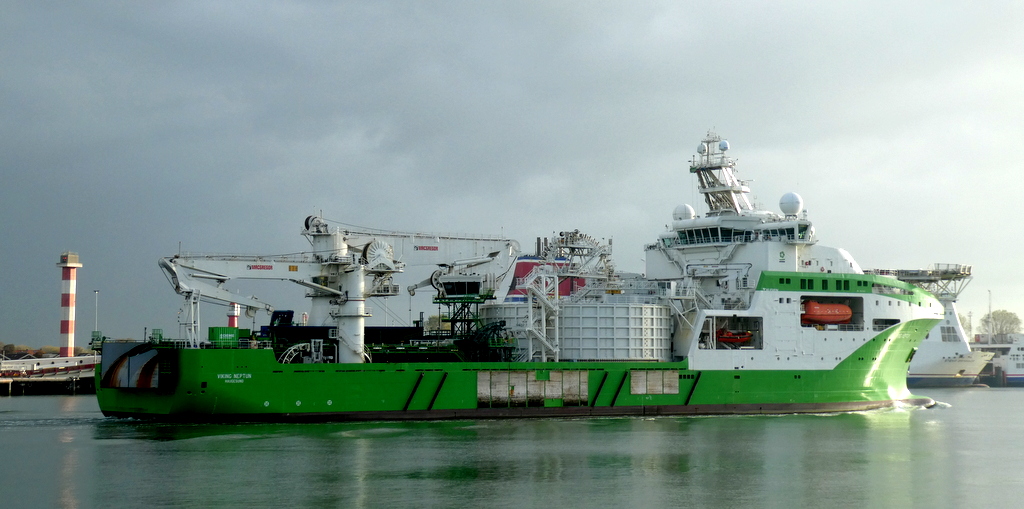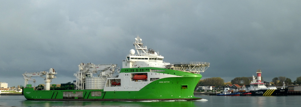 Donderdagmorgen 16 oktober 2025 gezien vanaf Het Kompas – Landtong Rozenburg, het offshore ondersteuningsschip VIKING NEPTUN (2015).Bestemming: 1e Werkhaven, Damen Verolme – Botlek.